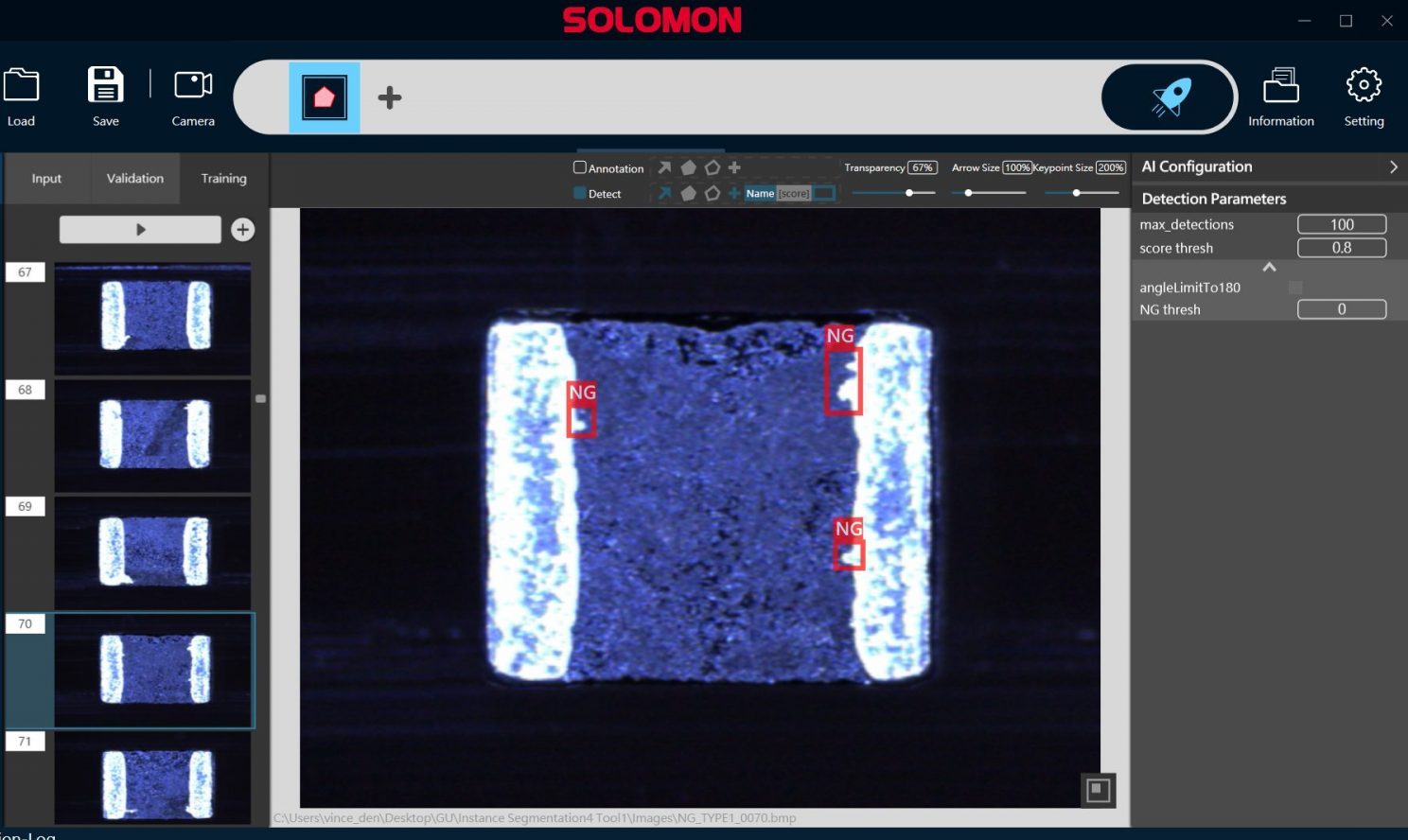 En surmontant les limitations traditionnelles de l’AOI, SolVision de Solomon effectue rapidement la reconnaissance optique de caractères (OCR) sans être affecté par l’arrière-plan, les conditions d’éclairage, la complexité ou l’apparence du numéro de série.