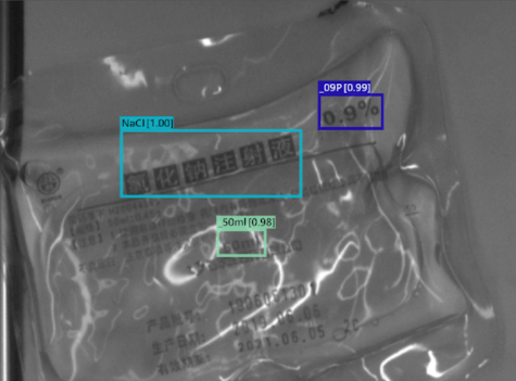 運用SolVision AI影像平台的Segmentation技術,針對點滴袋體上的名稱、濃度、容量等影像資訊訓練AI模型,學習影像特徵,藉此快速辨識並分類各式輸液品項。