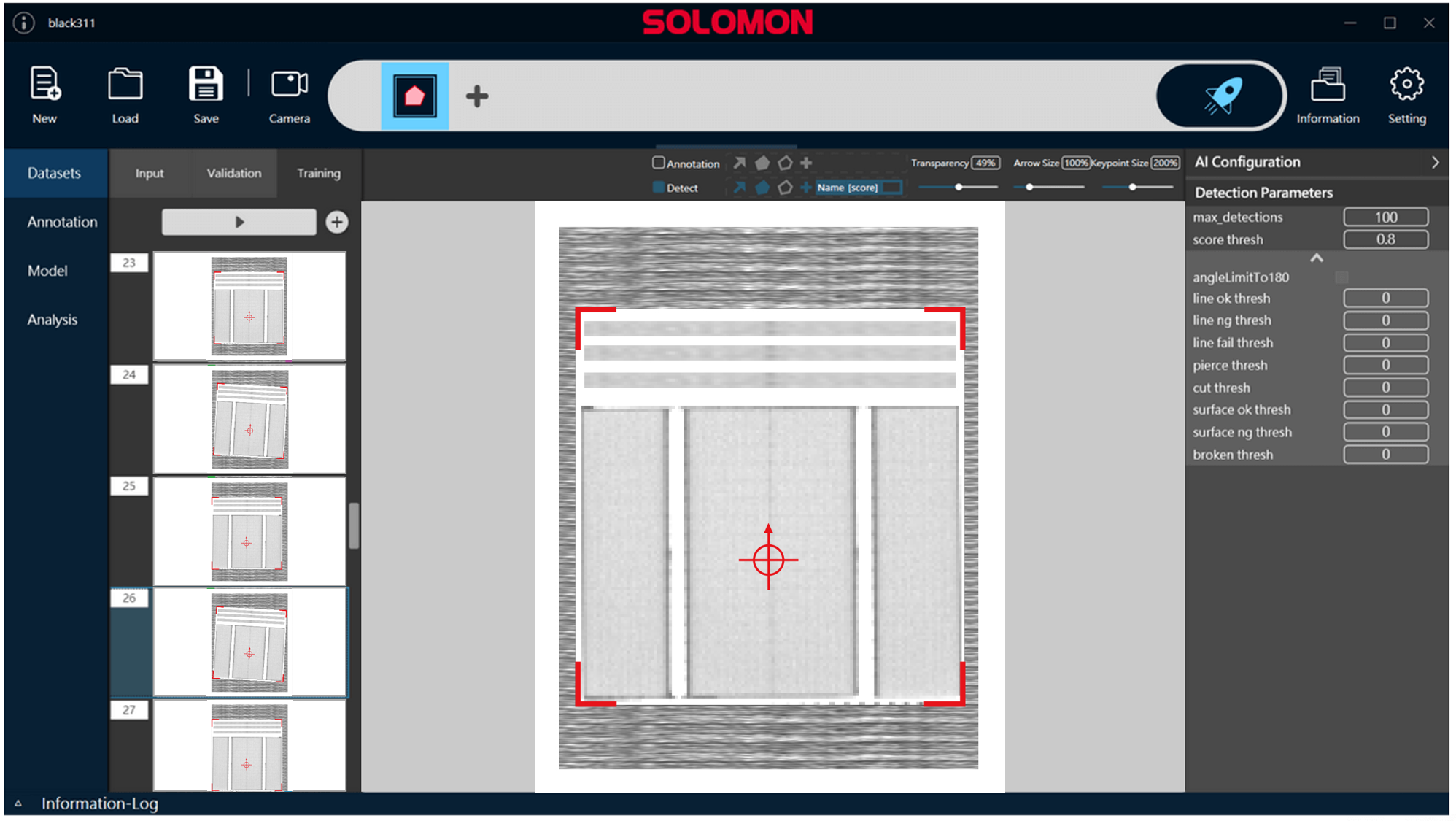 運用Solomon SolVision AI影像平台強化位移與角度資訊的可靠性,精準檢測固晶系統的製造誤差及異常情形。另一方面,AI模組亦可延伸學習不同的晶片形式,針對不同類型的封裝產品執行分析與檢測。
