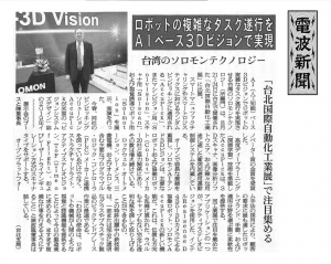【電波新聞】以AI為基礎的3D視覺系統,所羅門台北自動化展備受矚目