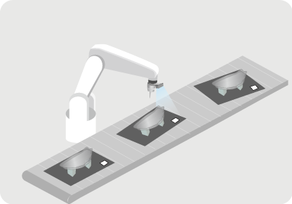 在自動化產線中,當進行物料取放、車燈塗膠或各種應用時,就算托盤來的角度每次都不一致或有所偏差,透過機器人視覺找到「Landmark」就能找到目標物的相對位置。